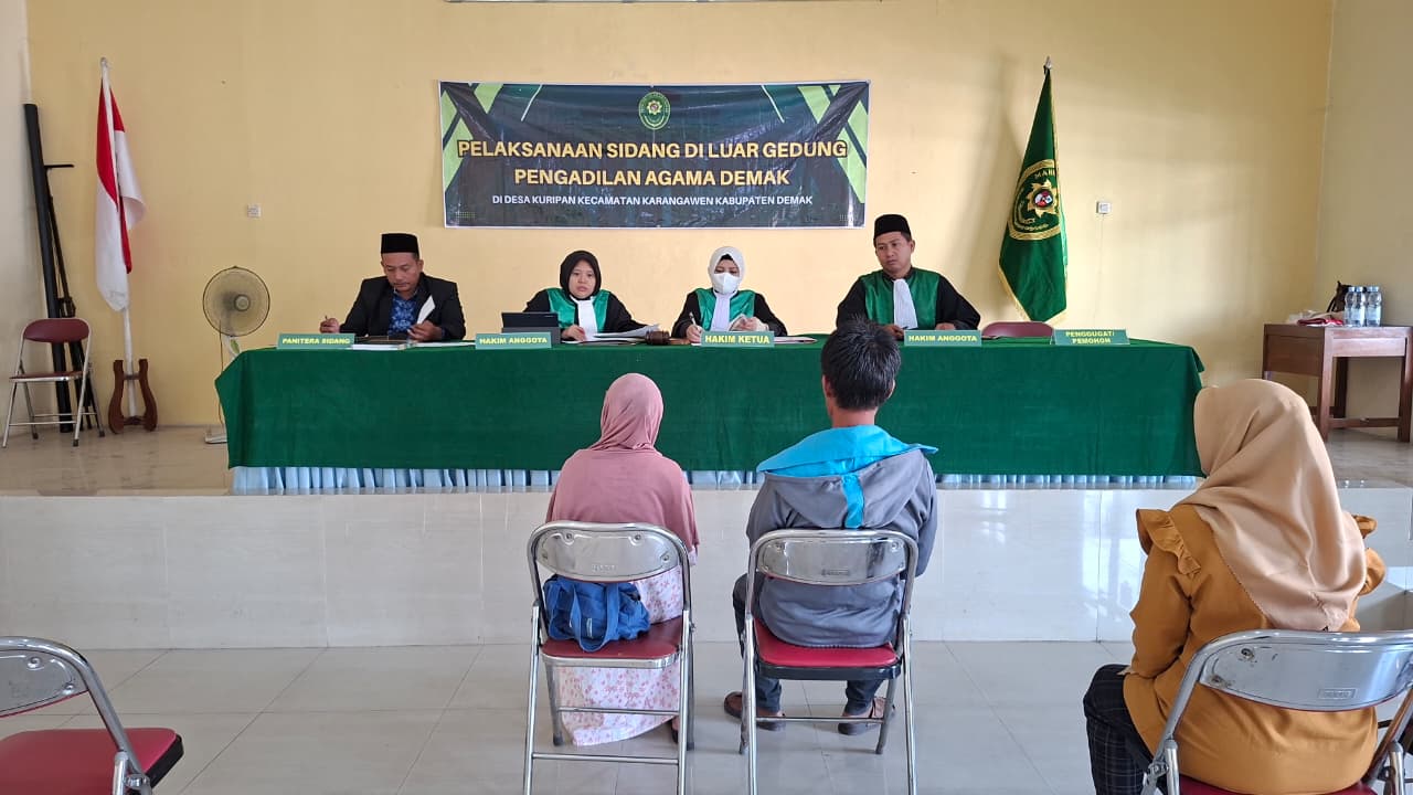 Pengadilan Agama Demak kembali melaksanakan kegiatan Sidang di Luar Gedung Pengadilan pada Jum’at, 17 April 2026, mulai pukul 09.00 WIB, bertempat di Balai Desa Kuripan. Kegiatan ini merupakan salah satu upaya Pengadilan Agama Demak dalam mendekatkan layanan peradilan kepada masyarakat pencari keadilan.